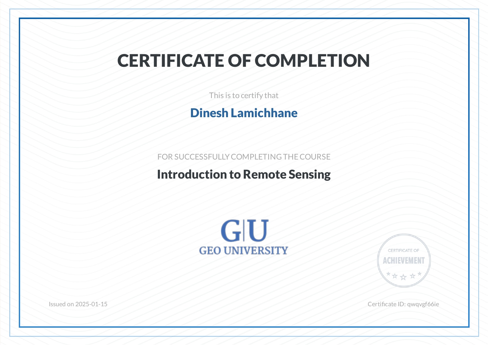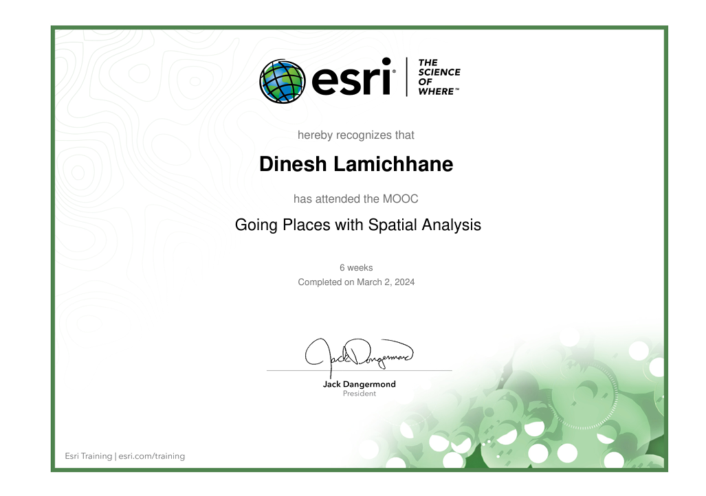 This page presents selected certifications and learning experiences that strengthen my expertise in GIS, remote sensing, drone mapping, cartography, spatial analysis, and geospatial technologies.